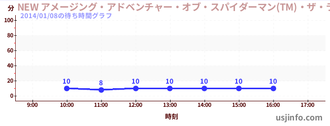 • NEW アメージング・アドベンチャー・オブ・スパイダーマン(TM)・ザ・ライド 4K3D$B$N(B2014年01月08日の待ち時間
