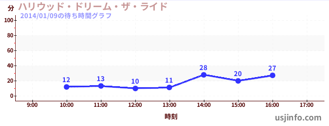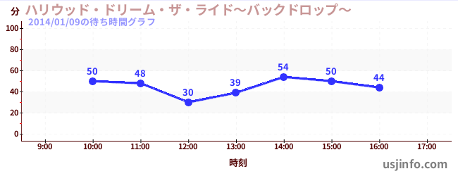 • ハリウッド・ドリーム・ザ・ライド〜バックドロップ〜$B$N(B2014年01月09日の待ち時間