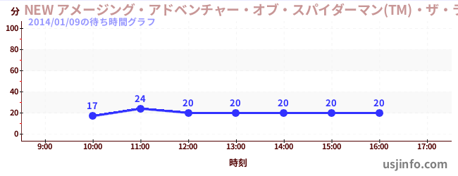 • NEW アメージング・アドベンチャー・オブ・スパイダーマン(TM)・ザ・ライド 4K3D$B$N(B2014年01月09日の待ち時間