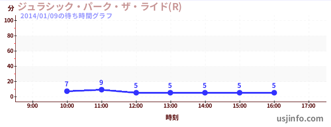 • ジュラシック・パーク・ザ・ライド(R)$B$N(B2014年01月09日の待ち時間