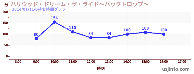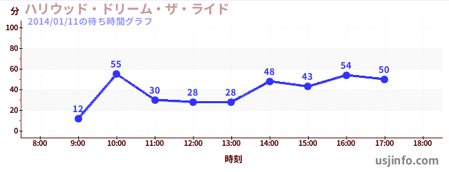 • ハリウッド・ドリーム・ザ・ライド〜バックドロップ〜$B$N(B2014年01月11日の待ち時間