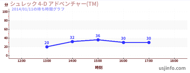 • シュレック 4-D アドベンチャー(TM)$B$N(B2014年01月11日の待ち時間