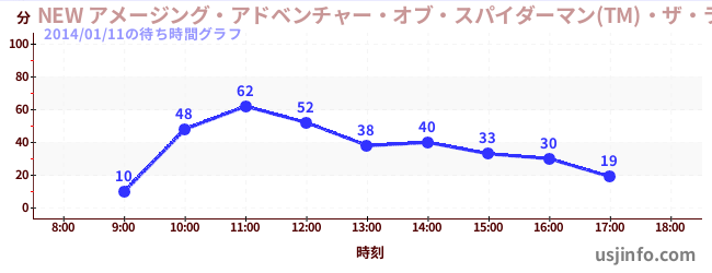 • NEW アメージング・アドベンチャー・オブ・スパイダーマン(TM)・ザ・ライド 4K3D$B$N(B2014年01月11日の待ち時間