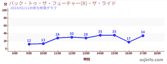 • バック・トゥ・ザ・フューチャー(R)・ザ・ライド$B$N(B2014年01月11日の待ち時間