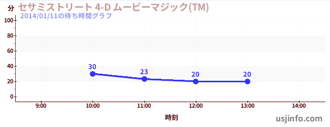 • セサミストリート 4-D ムービーマジック(TM)$B$N(B2014年01月11日の待ち時間