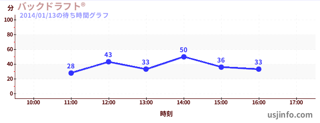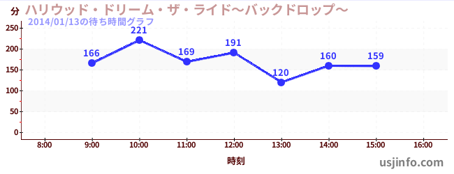 • ハリウッド・ドリーム・ザ・ライド〜バックドロップ〜$B$N(B2014年01月13日の待ち時間