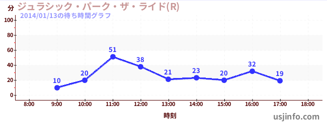 • ジュラシック・パーク・ザ・ライド(R)$B$N(B2014年01月13日の待ち時間
