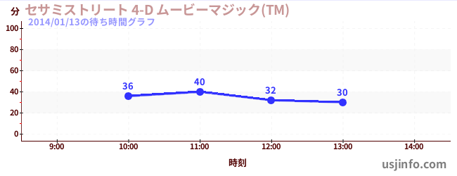 • セサミストリート 4-D ムービーマジック(TM)$B$N(B2014年01月13日の待ち時間