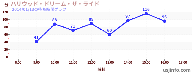 • ハリウッド・ドリーム・ザ・ライド$B$N(B2014年01月13日の待ち時間