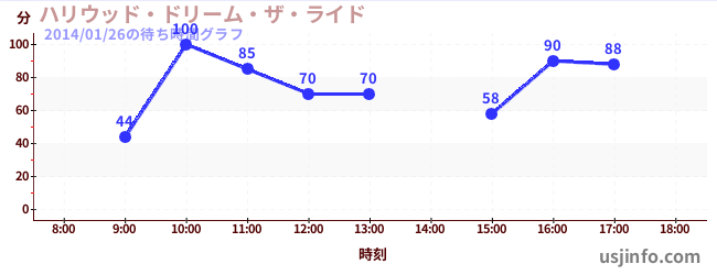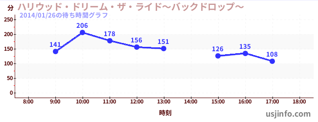 • ハリウッド・ドリーム・ザ・ライド〜バックドロップ〜$B$N(B2014年01月26日の待ち時間
