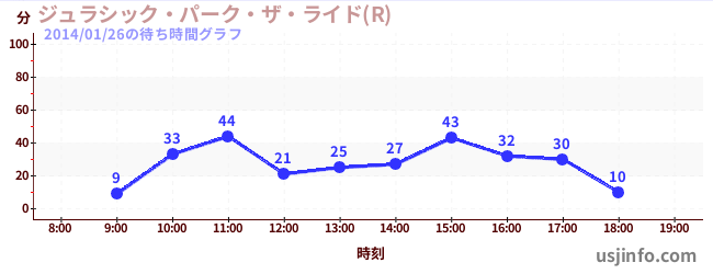 • ジュラシック・パーク・ザ・ライド(R)$B$N(B2014年01月26日の待ち時間