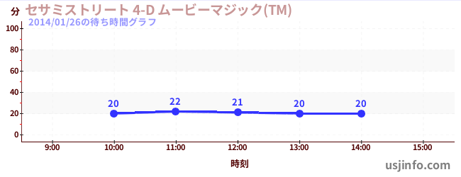• セサミストリート 4-D ムービーマジック(TM)$B$N(B2014年01月26日の待ち時間