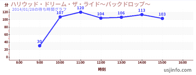 • ハリウッド・ドリーム・ザ・ライド〜バックドロップ〜$B$N(B2014年01月28日の待ち時間