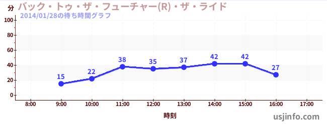 • バック・トゥ・ザ・フューチャー(R)・ザ・ライド$B$N(B2014年01月28日の待ち時間