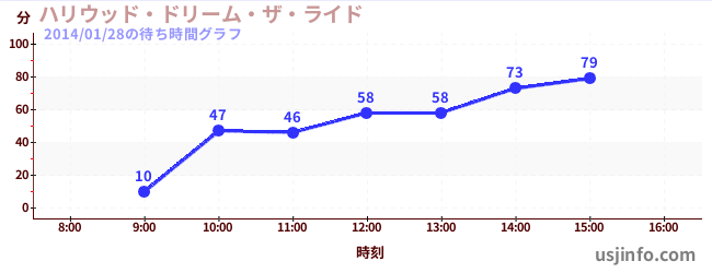 • ハリウッド・ドリーム・ザ・ライド$B$N(B2014年01月28日の待ち時間