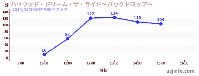 • ハリウッド・ドリーム・ザ・ライド〜バックドロップ〜$B$N(B2014年01月30日の待ち時間