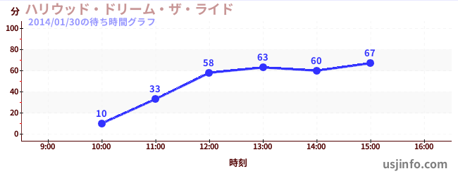 • ハリウッド・ドリーム・ザ・ライド$B$N(B2014年01月30日の待ち時間