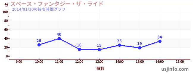 • スペース・ファンタジー・ザ・ライド$B$N(B2014年01月30日の待ち時間