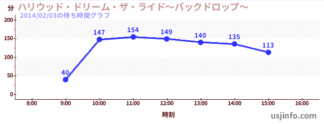 • ハリウッド・ドリーム・ザ・ライド〜バックドロップ〜$B$N(B2014年02月03日の待ち時間