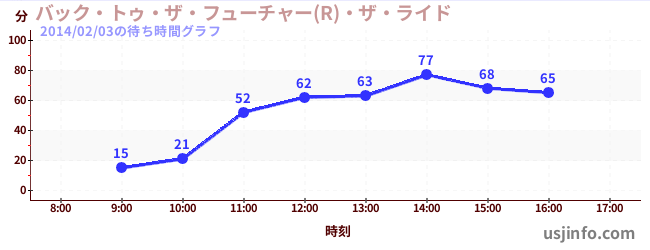 • バック・トゥ・ザ・フューチャー(R)・ザ・ライド$B$N(B2014年02月03日の待ち時間