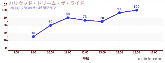 • ハリウッド・ドリーム・ザ・ライド$B$N(B2014年02月03日の待ち時間