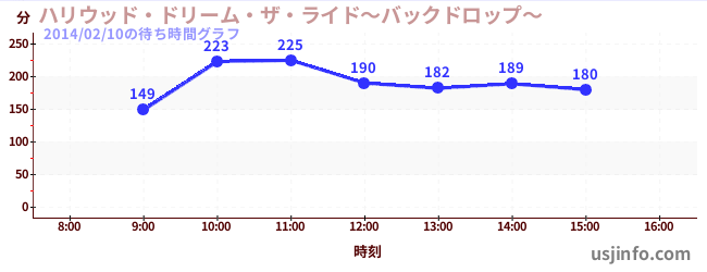 • ハリウッド・ドリーム・ザ・ライド〜バックドロップ〜$B$N(B2014年02月10日の待ち時間