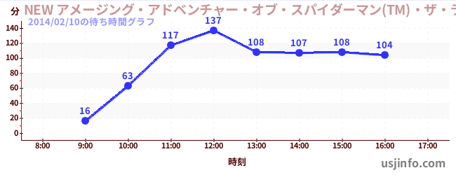 • NEW アメージング・アドベンチャー・オブ・スパイダーマン(TM)・ザ・ライド 4K3D$B$N(B2014年02月10日の待ち時間