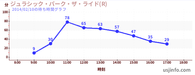 • ジュラシック・パーク・ザ・ライド(R)$B$N(B2014年02月10日の待ち時間
