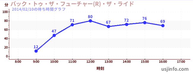 • バック・トゥ・ザ・フューチャー(R)・ザ・ライド$B$N(B2014年02月10日の待ち時間