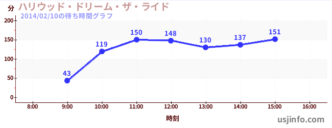 • ハリウッド・ドリーム・ザ・ライド$B$N(B2014年02月10日の待ち時間