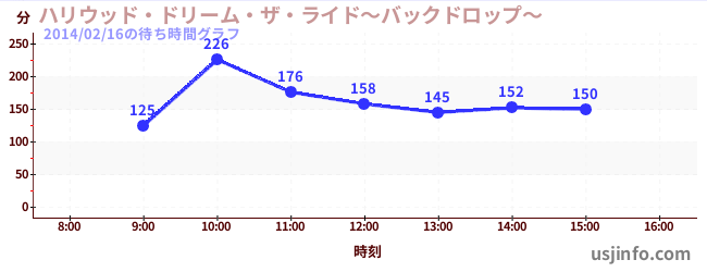 • ハリウッド・ドリーム・ザ・ライド〜バックドロップ〜$B$N(B2014年02月16日の待ち時間