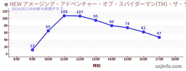 • NEW アメージング・アドベンチャー・オブ・スパイダーマン(TM)・ザ・ライド 4K3D$B$N(B2014年02月16日の待ち時間