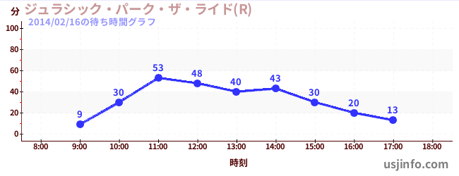 • ジュラシック・パーク・ザ・ライド(R)$B$N(B2014年02月16日の待ち時間