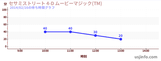 • セサミストリート 4-D ムービーマジック(TM)$B$N(B2014年02月16日の待ち時間