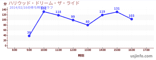 • ハリウッド・ドリーム・ザ・ライド$B$N(B2014年02月16日の待ち時間