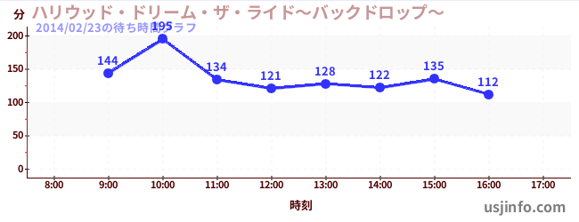 • ハリウッド・ドリーム・ザ・ライド〜バックドロップ〜$B$N(B2014年02月23日の待ち時間