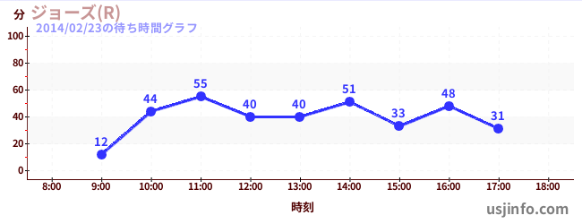 • ジョーズ(R)$B$N(B2014年02月23日の待ち時間
