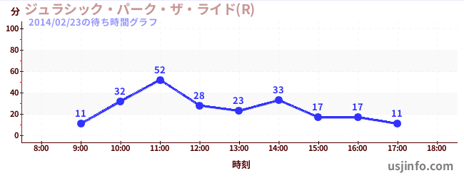 • ジュラシック・パーク・ザ・ライド(R)$B$N(B2014年02月23日の待ち時間