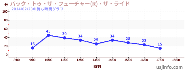 • バック・トゥ・ザ・フューチャー(R)・ザ・ライド$B$N(B2014年02月23日の待ち時間