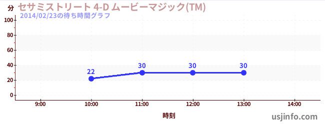 • セサミストリート 4-D ムービーマジック(TM)$B$N(B2014年02月23日の待ち時間
