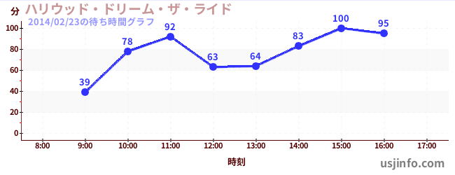 • ハリウッド・ドリーム・ザ・ライド$B$N(B2014年02月23日の待ち時間