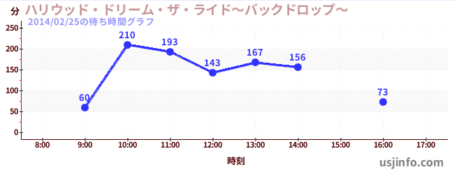 • ハリウッド・ドリーム・ザ・ライド〜バックドロップ〜$B$N(B2014年02月25日の待ち時間