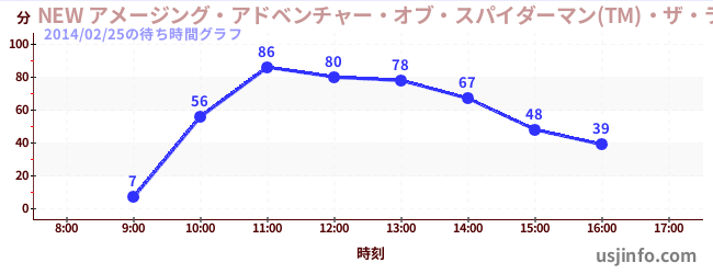 • NEW アメージング・アドベンチャー・オブ・スパイダーマン(TM)・ザ・ライド 4K3D$B$N(B2014年02月25日の待ち時間