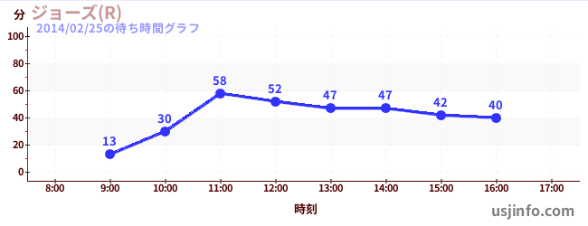 • ジョーズ(R)$B$N(B2014年02月25日の待ち時間