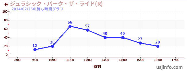 • ジュラシック・パーク・ザ・ライド(R)$B$N(B2014年02月25日の待ち時間