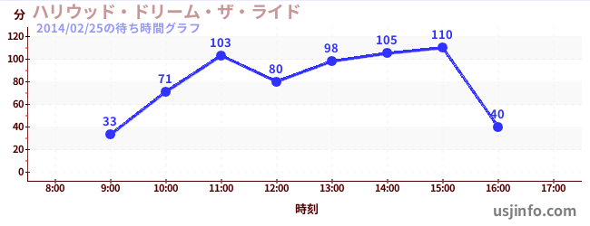 • ハリウッド・ドリーム・ザ・ライド$B$N(B2014年02月25日の待ち時間