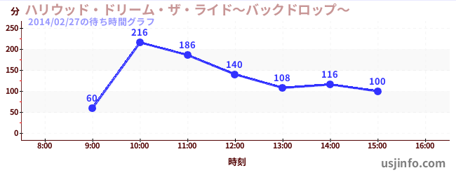• ハリウッド・ドリーム・ザ・ライド〜バックドロップ〜$B$N(B2014年02月27日の待ち時間