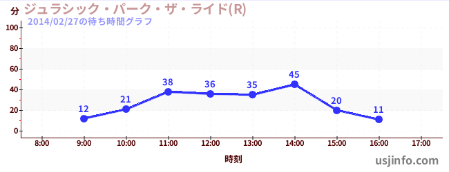 • ジュラシック・パーク・ザ・ライド(R)$B$N(B2014年02月27日の待ち時間