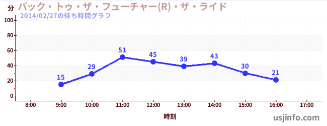 • バック・トゥ・ザ・フューチャー(R)・ザ・ライド$B$N(B2014年02月27日の待ち時間