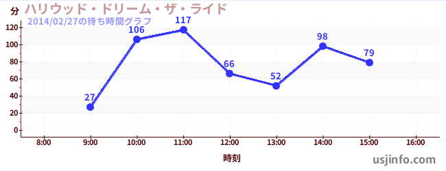 • ハリウッド・ドリーム・ザ・ライド$B$N(B2014年02月27日の待ち時間